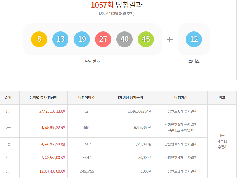 평소에 2등당첨금이 평균 4천만원 이상이였는데 요번에는 2등당첨자수가 유독 많아서 당첨금이 7백만원정도 밖에 안됩니다. 2등당첨되신 분들은 2등이라는 엄청난 행운이 찾아 왔는데 당첨금액이 너무 적어서 아쉬워 할 것 같습니다.