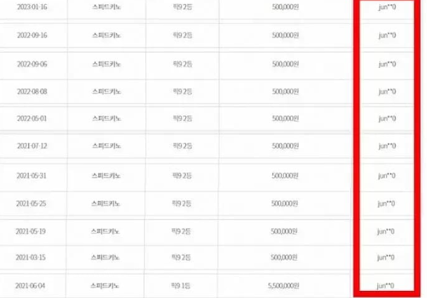 또한 약 5년동안 같은 사람으로 추정되는 사람이 전자복권으로 총 329회 당첨되었다는 이야기도 있습니다. 동행복권 측은 당첨바 보호를 위해 아이디를 축약해 표기한다며 같은 사람이 아니라는 입장을 밝혔습니다.